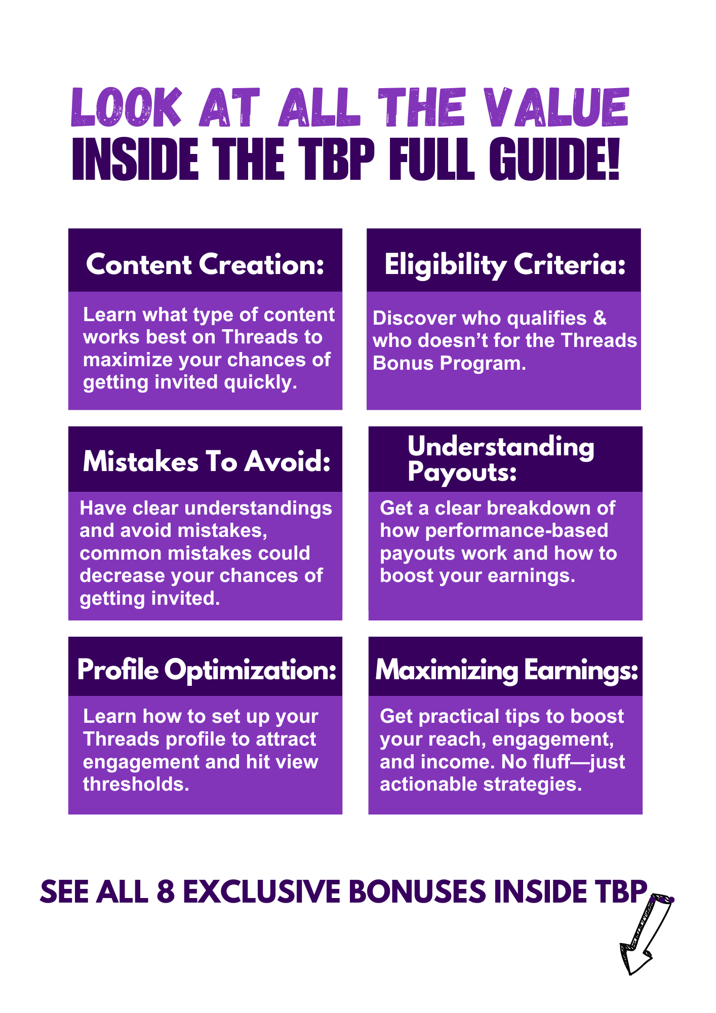 - One-Time Investment, Unlimited Returns – The price of this guide is nothing compared to the potential earnings you can make from the Threads Bonus Program.